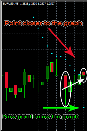 SAR is shown as a series of dots placed / located above or below the price. From the position above / below those used by traders to generate transaction signals depending on where the position of the points.